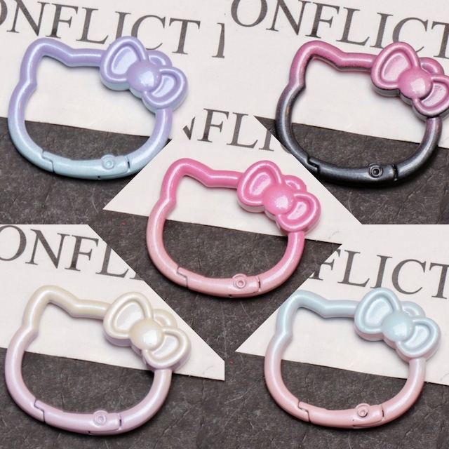 リボンを付けた猫の顔型がとってもキュートなカラビナです。 軽量でコンパクトながら、しっかりとした作りでバッグやポーチ、鍵などのアクセントにぴったり。 そのままキーホルダーとして使うのはもちろん、ビーズやチャームを自由に組み合わせてDIYにもおすすめです。 カラー展開も豊富で、お好きな色を選んで自分だけのオリジナルアクセを作れます。❤️ •約 37mm × 30mm
