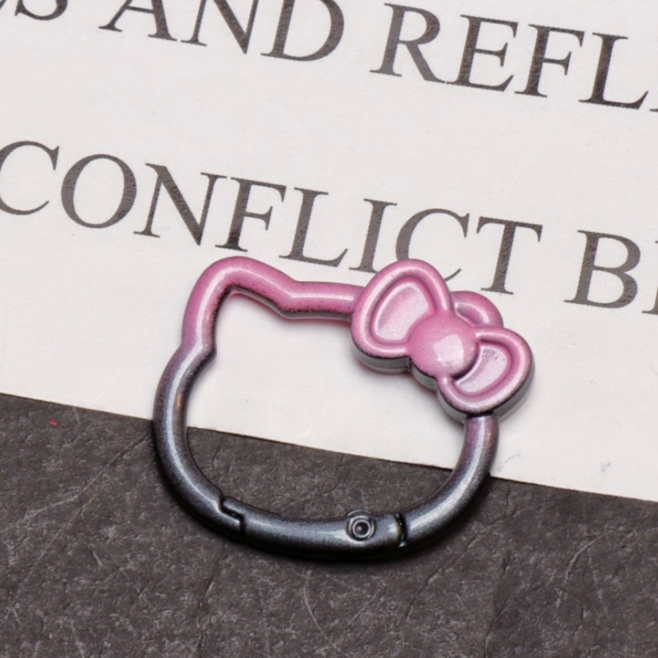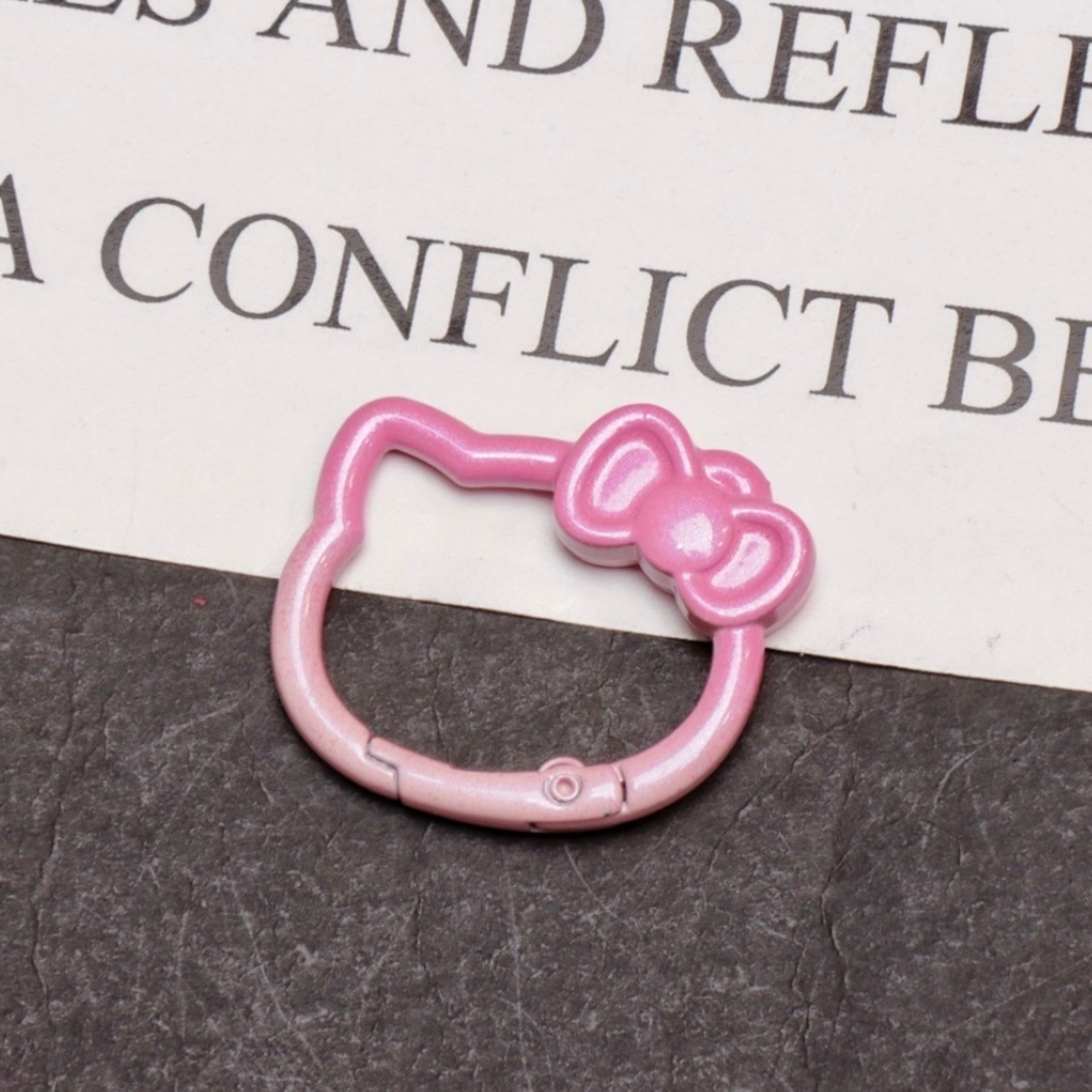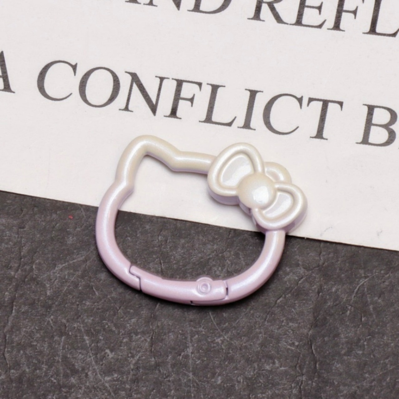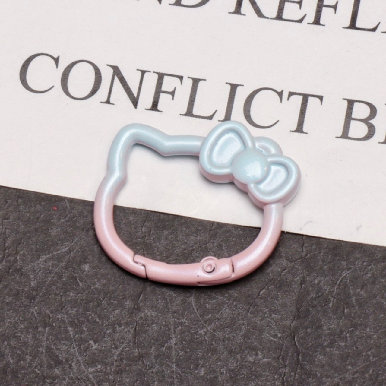 リボンを付けた猫の顔型がとってもキュートなカラビナです。
